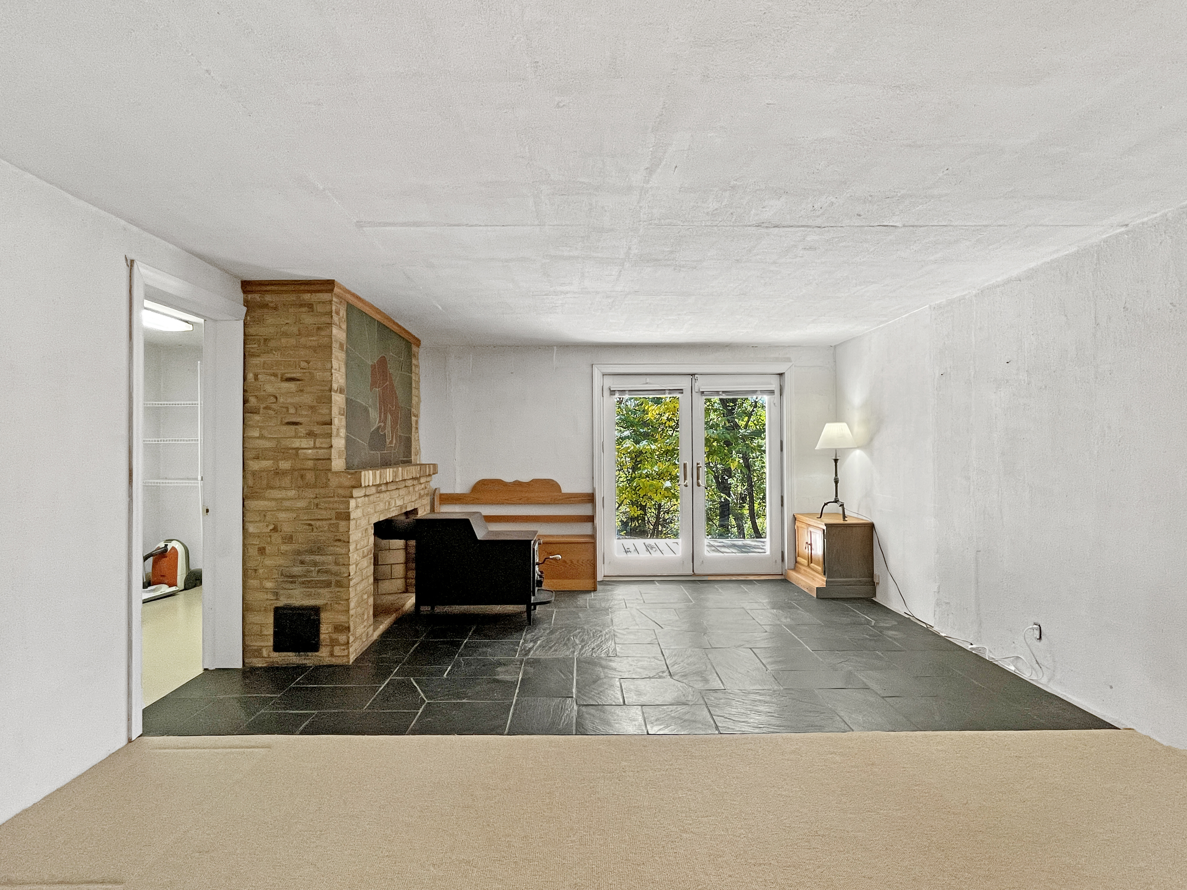 The basement was originally built as an underground, passive-solar compound in 1981 and is complete with two bedrooms, two baths, a full kitchen, a laundry room with extra storage, and a living room with a third wood stove, all finished with slate flooring and decorative accents. Circa 1996, the current entry level built on top and seamlessly integrated with the original structure.